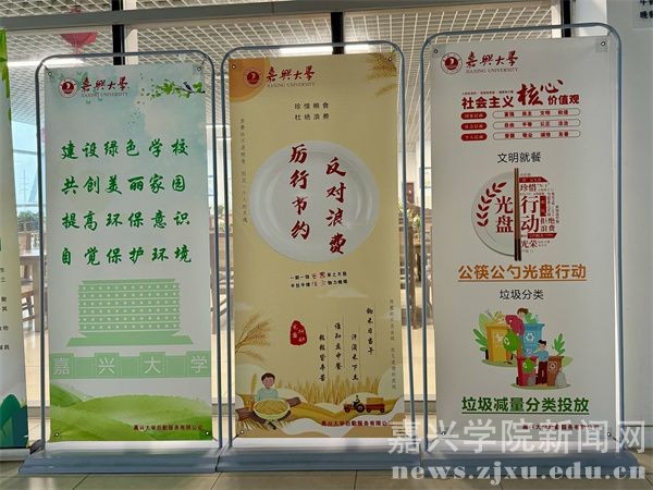 在学校的荷园、梅园、桂园餐厅,每张餐桌上都张贴着“厉行节约、反对浪费”的宣传标语;餐厅门厅、餐具回收点等显眼位置摆放着世界粮食日宣传展板;餐厅四周的文化宣传海报上也展现着“加入光盘行动、节约从我做起”“公勺公筷、全民行动”“民以食为天、争当光盘侠”等宣传标语;餐厅内的电子显示屏,也以图文并茂的方式提醒师生共同关注粮食安全、积极践行勤俭节约;在就餐高峰期,各餐厅经理和学生志愿者在现场积极引导师生员工合理取餐、文明用餐。此外,学校厨余垃圾进行集中回收、统一处理,切实做到了变废为宝、资源再利用。