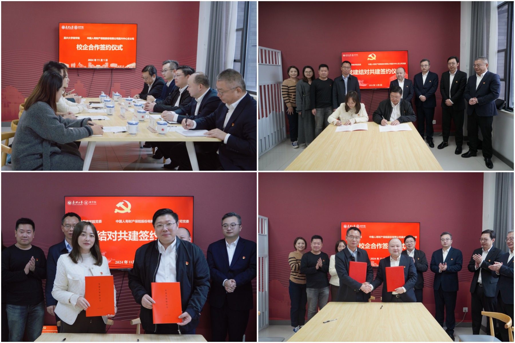 11月1日,商学院与中国人寿财产保险股份有限公司嘉兴中心支公司在尚德楼355举行党建结对共建和校企合作签约仪式。