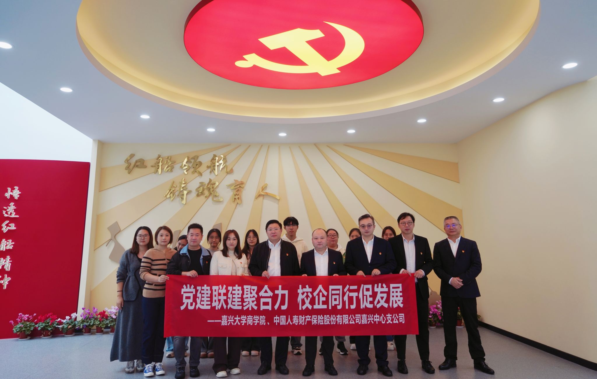 中国人寿财险嘉兴中心支公司党委书记、总经理冯旻,党委委员、纪委书记、总经理助理罗春焱,商学院党委书记、副院长虞岚,党委委员、副院长冯磊东以及双方相关领导、党员代表等参加了签约仪式。