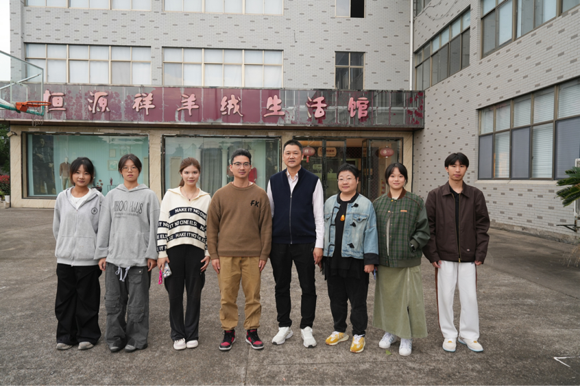 11月10日,设计学院刘文教授带领2025年挑战杯针织战队部分成员赴杭州琪利琪羊绒服饰有限公司,即恒源祥羊绒衫生产基地进行参观学习。