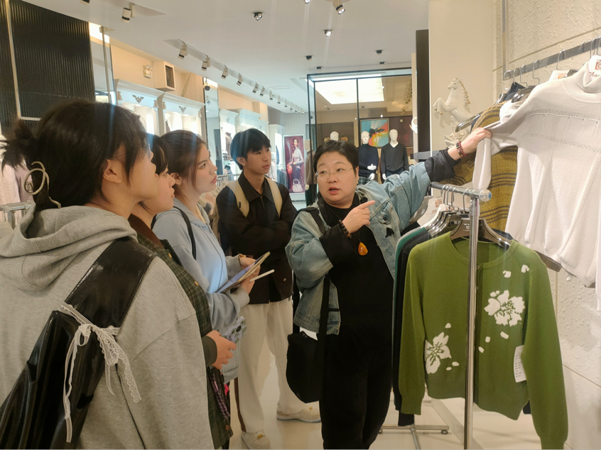 师生首先参观了恒源祥羊绒生活馆,刘文教授现场讲解了羊绒衫的纹样设计,学生们近距离感受到了羊绒的独特魅力,并了解到公司的所有羊绒产品均可水洗,是新技术的体现。