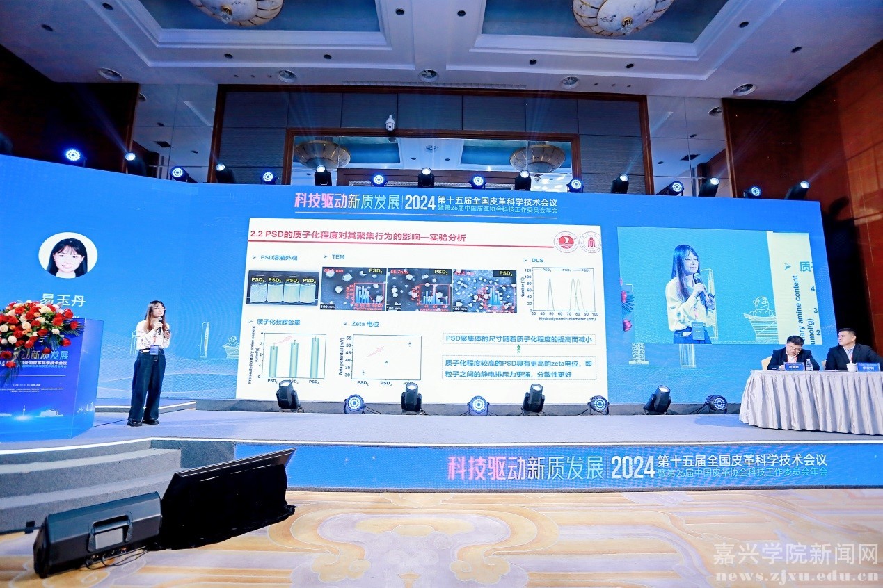 在会上,李玉中理事长、赵长生副校长、彭孝军院士分别发表了致辞。随后举行了第十二届张铨基金奖颁奖仪式。会议5场特约报告和31个口头报告、62篇电子墙报,来自四川大学、陕西科技大学、齐鲁工业大学(山东省科学院)、中国皮革制鞋研究院有限公司、华中农业大学、华东理工大学、嘉兴大学、郑州大学、西南大学、武汉轻工大学、兴业皮革、四川达威、徐州鸿丰、兄弟科技等全国各地的科技工作者分享、交流了最新研究成果。材纺学院罗建勋教授做了题为《基于益生菌的生物质系列助剂的制备及在皮革生产中的应用》的报告,易玉丹博士做了题为《阳离子两亲性丙烯酸共聚物(PSD)在有机鞣革复鞣中的应用:质子化程度的影响》的报告,得到与会专家、学者的关注和研讨。同时,罗建勋教授作为大会主持人之一主持了会议报告。