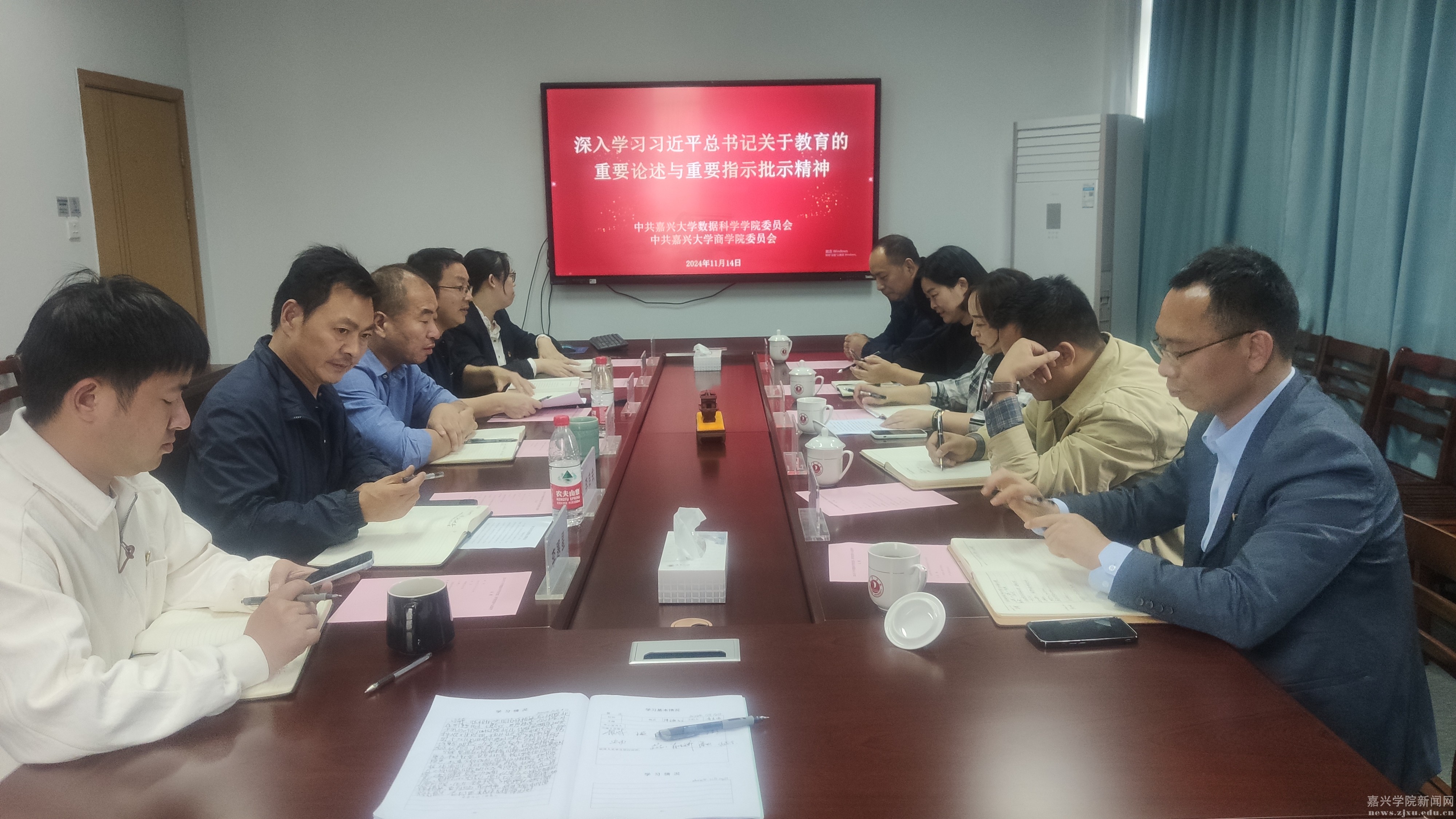 11月14日下午,数据科学学院和商学院在博学楼325会议室召开党委理论学习中心组集体学习会。专题学习习近平总书记关于教育的重要论述与重要指示批示精神。数据科学学院和商学院理论学习中心组成员参加会议。数据科学学院党委书记黄金珠主持学习。