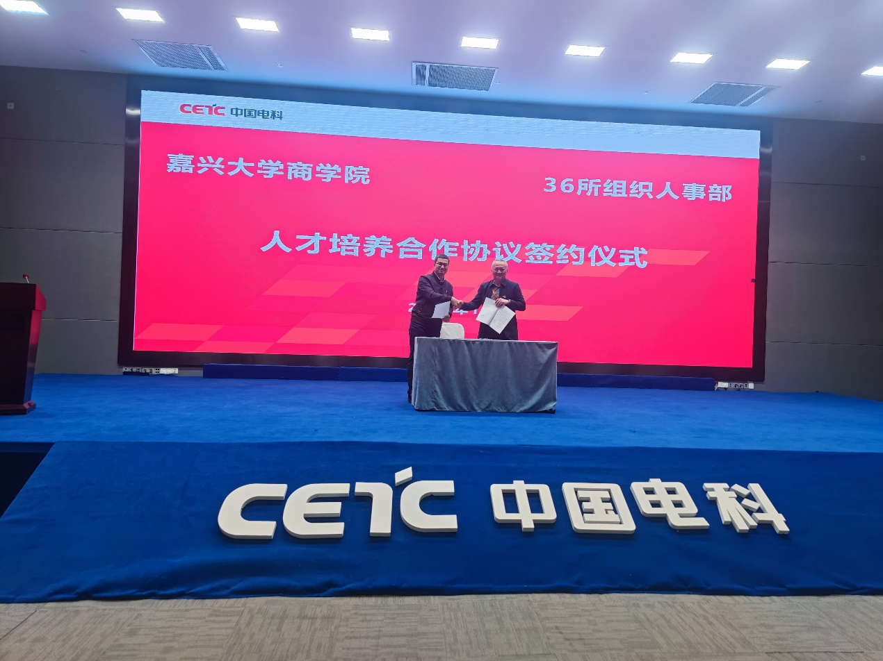 为实现校企资源的有机结合和配置优化,积极探索人才培养模式新路径,2024年11月14日,商学院院长李勇带领学院信管系的全体教师和22级学生赴中电科(嘉兴)智慧产业园参观学习,与中国电科第三十六研究所产业部、组织人事部和三十六所各控股公司共同探讨校企合作路径,签订实习基地协议。