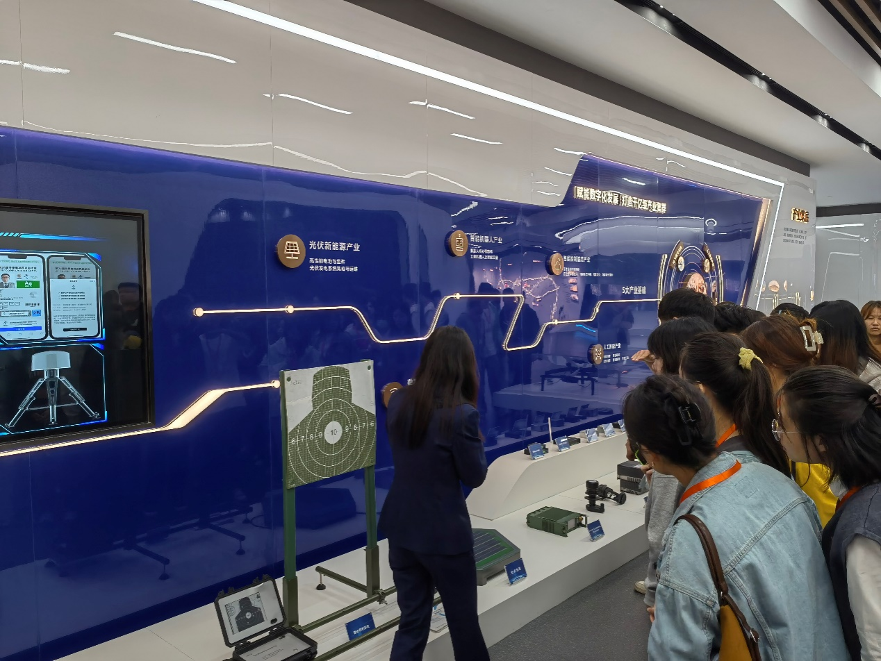 三十六所产业部综合经理夏璐婷向商学院师生一行详细介绍了三十六所在智能生态环保、海洋电子装备、基础电子产品、电磁安防应用等多个数字化智慧应用产业取得的技术创新成果,展示了三十六所为推进国防和军队现代化、国家治理体系和治理能力现代化发挥的重要作用。