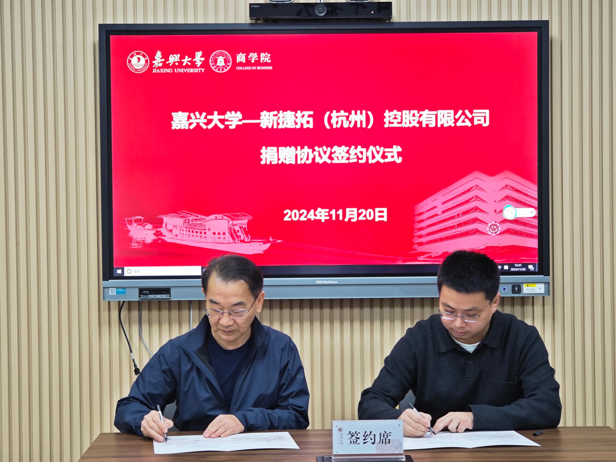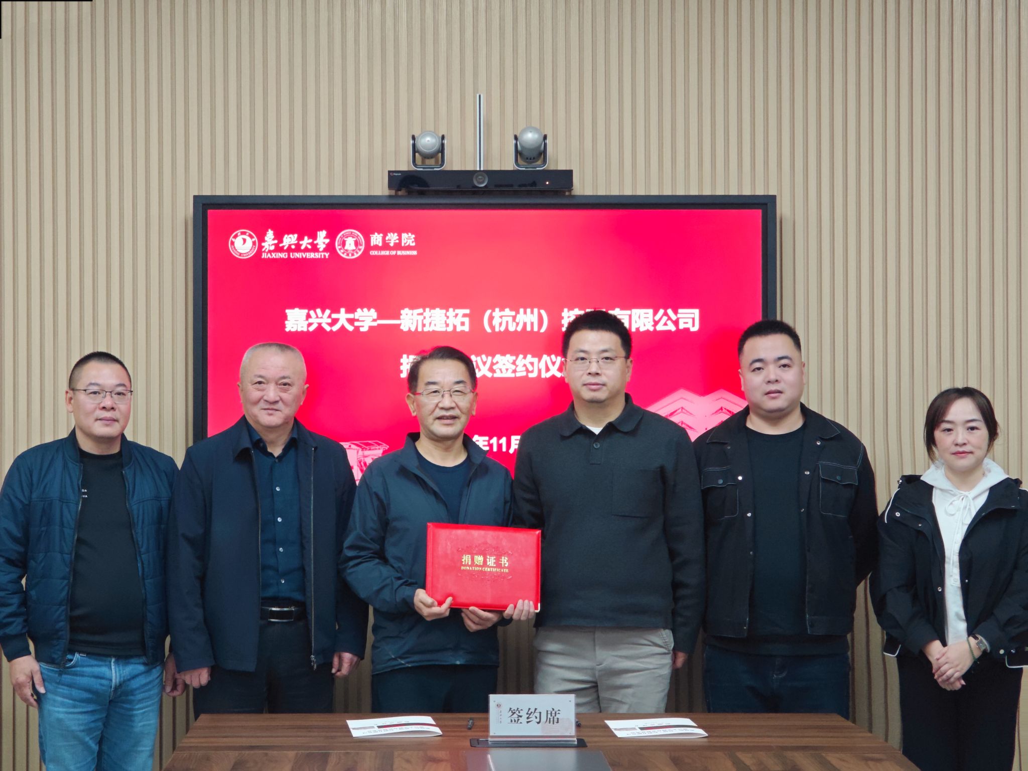 11月20日,商学院在尚德楼345会议室举行校友捐赠协议签约仪式。会计00级校友、新捷拓(杭州)控股有限公司创始人何建峰,电子信息工程08级校友、浙江亿赛建设有限公司总经理吴绍洪,人力00级校友、嘉兴大学后勤服务有限公司副总经理徐建辉,嘉兴大学社会合作处处长丁玉泉,商学院院长李勇,副院长翁胜斌,青年教师蔡鑫宇参加捐赠活动。院党委书记虞岚主持本次仪式。