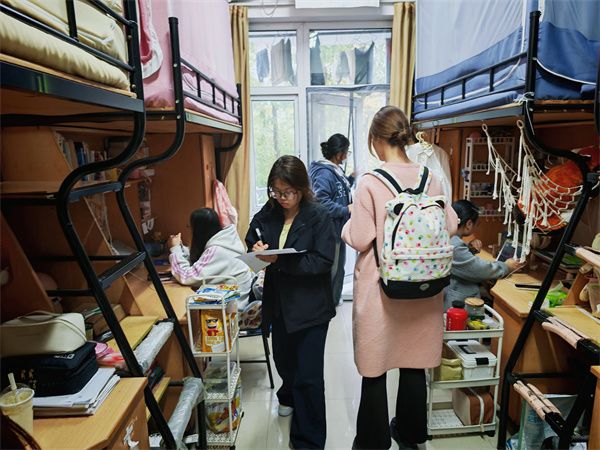 交流会结束后,全体成员依次前往美嘉苑、和兴苑部分学生寝室,对照内务检查评分标准,公平、细致地开展寝室卫生和安全检查并进行现场打分。整个打分过程中,公寓服务部工作人员对学生代表们提出的疑问进行了现场解答,对学生们在内务整理中遇到的困惑进行了耐心指导,对部分存在安全隐患的寝室提出了整改要求。打分结束后,所在公寓楼楼长公布了抽查寝室的内务成绩,并与大家进行了现场校准。