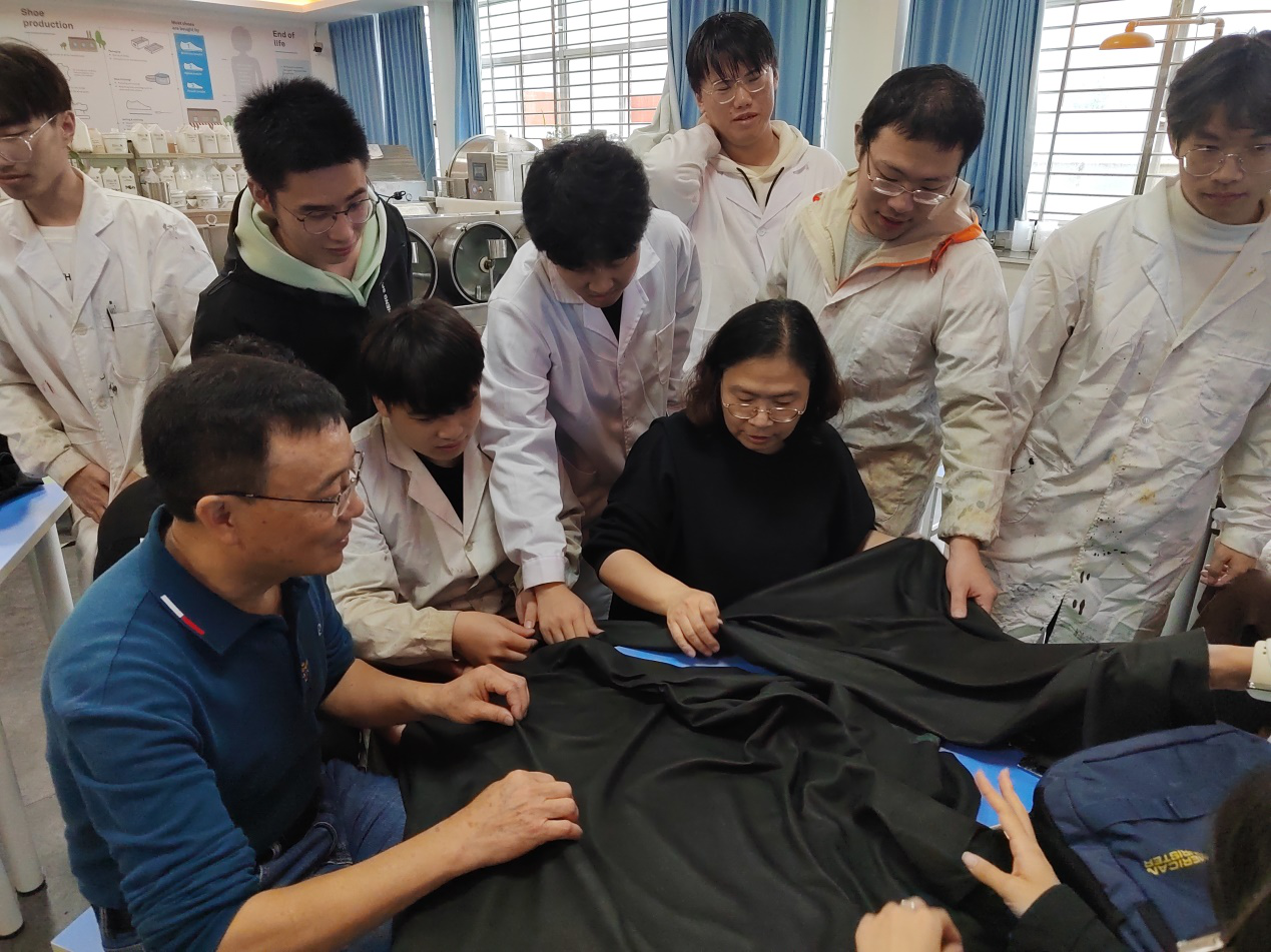“皮革水场技术交流周”以市场最新清洁化制革技术之无铬鞣绵羊皮服装革的设计与制作为主要内容,由校内外导师联合指导学生们基于浸酸绵羊皮进行鞣制、湿整饰工艺的设计与实施。期间,吴仲蓬经理还讲解了目前市场上的系列无铬鞣剂及其鞣制后皮革的特点。