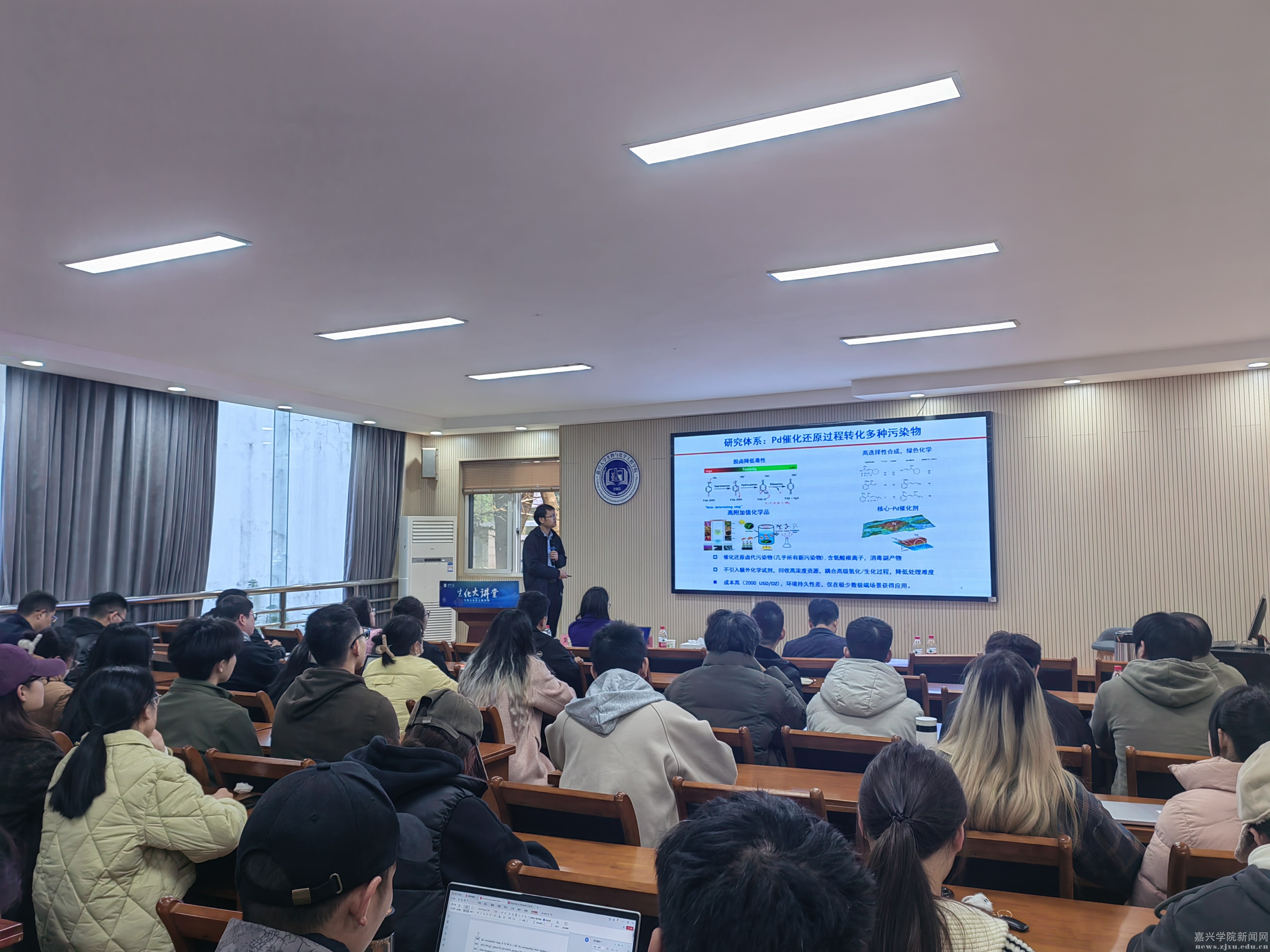 12月2日上午,中国科学院生态环境研究中心刘睿研究员、国科大杭州高等研究院张海燕教授作客“生化大讲堂”并应邀为生化学院师生分别做题为“基于表面增强拉曼光谱的定量催化过程研究”和“多环境介质中六氯丁二烯的赋存与来源”的学术报告。生化学院郭隆华教授主持会议,全院师生近60人到场聆听。