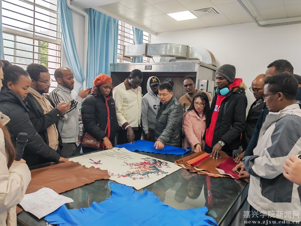 首先,罗建勋教授代表我院及轻化工程系对国际友人代表团的到来表示热烈欢迎。随后,轻化221班王雨欣同学用全英文全程讲解了我校轻化工程专业及其轻化工程智慧实验室的发展历程、特色和现状,罗建勋教授就相关内容进行了补充介绍。其次,在交流环节,罗建勋教授就皮革的生产过程、行业和专业未来发展的“清洁化、数智化、时尚化、功能化、标准化、轻量化、资源利用化”及内涵建设和国际化教育等内容进行了分享,并回答了团队成员的提问。最后,团队成员在陈炜栋老师的讲解下参观了我校创新创业学院及近年来的创新、创业的成果。