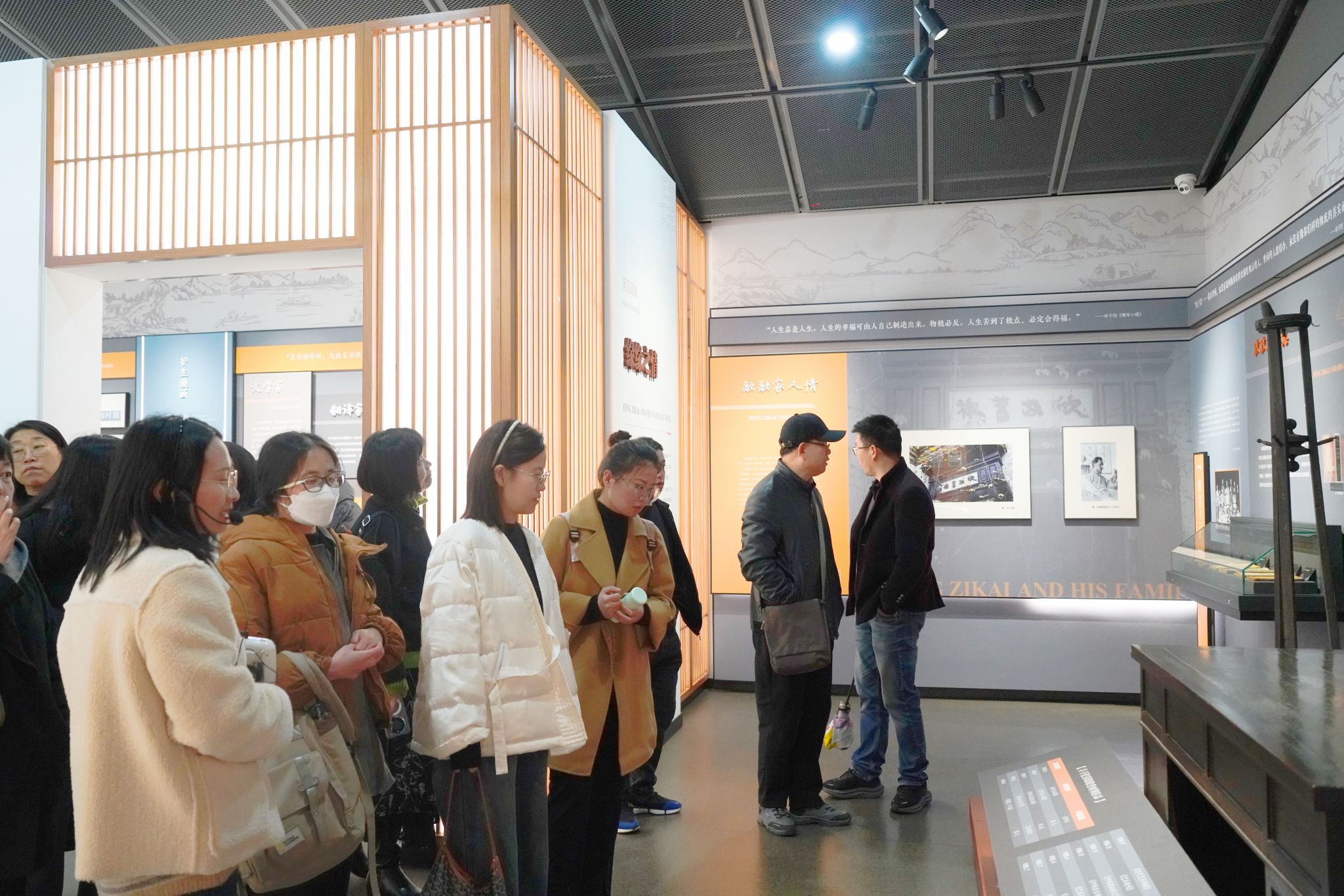 党员教师们随后参观了丰子恺纪念馆。作为浙江省爱国主义教育基地和廉政文化教育基地,丰子恺纪念馆生动展现了这位现代著名漫画家、教育家的人生轨迹。大家依次参观了艺术生涯陈列室、书画精品陈列室和缘缘堂,深入了解丰子恺先生的艺术成就和爱国情怀。随后大家前往纪念馆旁的中国桐乡廉政漫画馆参观。馆内的廉政漫画构思生动巧妙、内容幽默诙谐、表意酣畅淋漓。大家在展厅中驻足观赏,一起解读漫画使用的反腐倡廉的表现手法和技巧,在艺术熏陶中接受廉政文化教育,进一步增强拒腐防变能力。