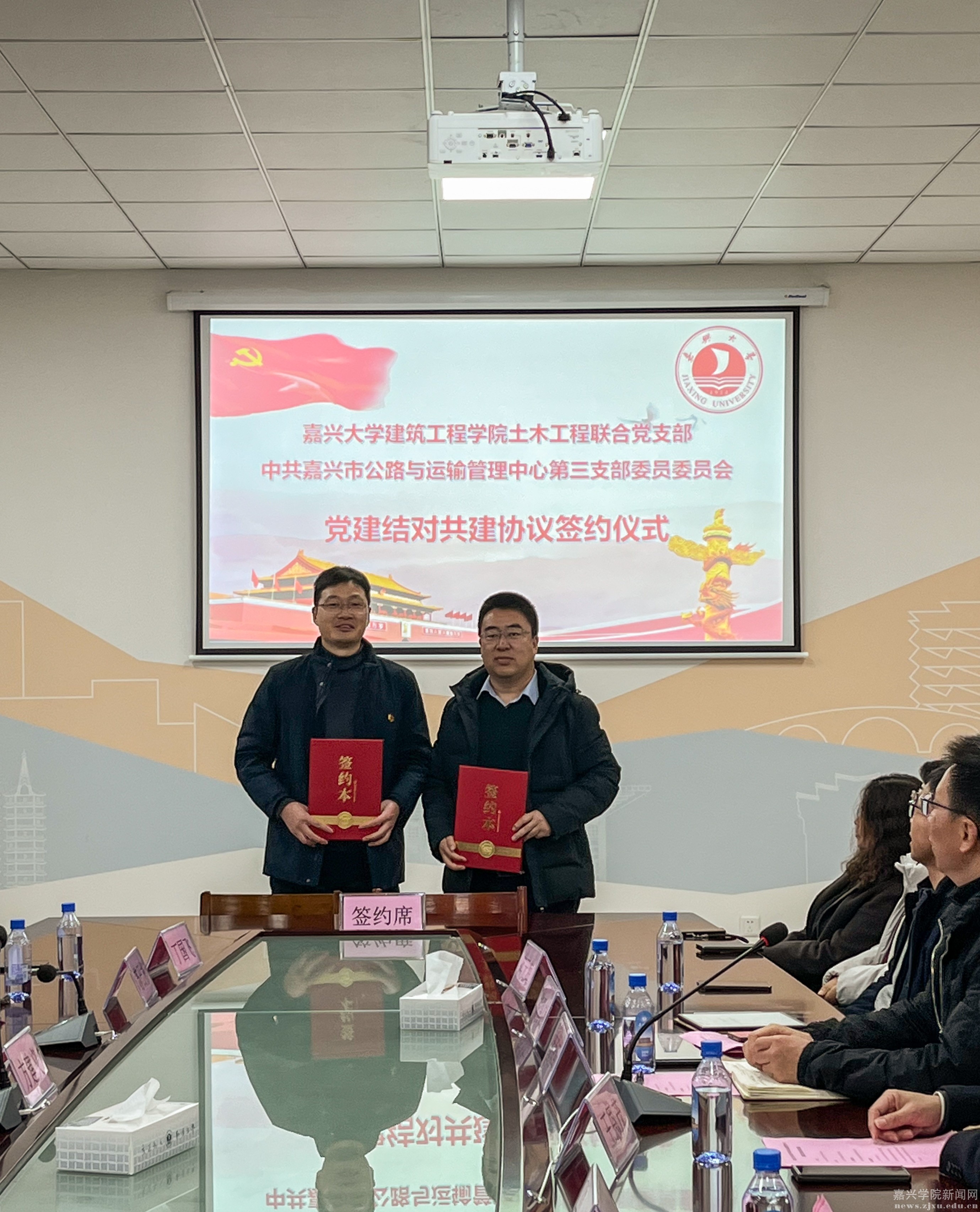 在建筑工程学院党委书记童勇军的主持下,建筑工程学院土木工程联合党支部与嘉兴市公路与运输管理中心第三支部共同签署了党建结对共建协议。建筑工程学院院长王恩茂、副院长熊厚仁、土木工程联合党支部全体党员共同见证了这一重要时刻。