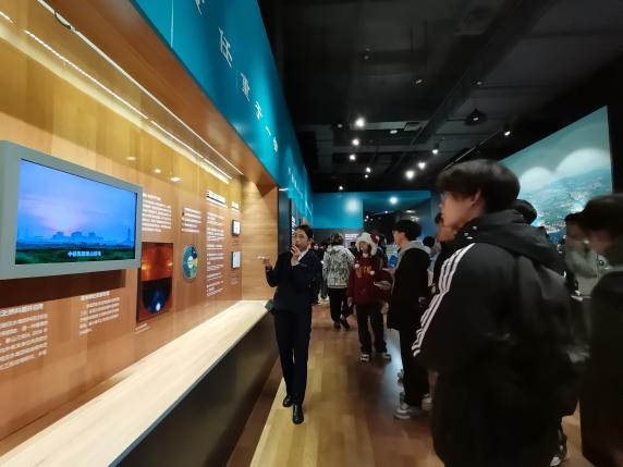 同学们在核电科技馆讲解员的带领下,走进“中国核电之路”、“核电站探密”、“核安全与环保”、“核电站互动”、“核谐家园”等主题展厅。科技馆中一件件见证历史的展品,一幅幅描绘科技蓝图的画卷,都诉说着核电事业背后无数科研人员的无私奉献和我国核电事业发展历程中的艰辛与荣耀。讲解员的每一个讲解都如同点点星光,照亮了同学们对核电领域认知的夜空,为同学们开启了一扇深入了解爱国主义与科学家精神的大门。