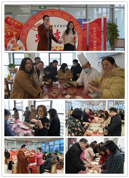 祥龙贺瑞辞旧去,金蛇纳祥踏歌来。1月9日下午,商学院举办了一场别开生面的“迎新年、包饺子、送春联”年会活动,院领导班子、全体教职工欢聚一堂、共迎新年。