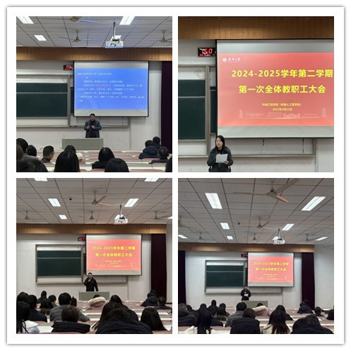 为全面贯彻学校工作部署,谋划新学期发展蓝图,2月23日,机械工程学院(机器人工程学院)召开2024-2025学年第二学期第一次全体教职工大会。学院领导班子成员及全体教职工参加会议,会议由学院党委书记战昕主持。