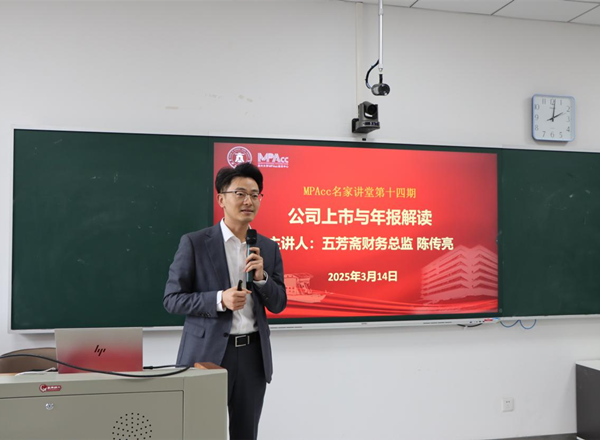 3月14日下午,MPAcc名家讲坛第十四期在尚德楼311教室精彩开讲。浙江五芳斋实业股份有限公司财务总监、正高级会计师陈传亮担任主讲嘉宾。讲座由MPAcc教育中心主任潘煜双教授主持,商学院会计系、财务系教师代表、2024级会计硕士等70余人参加讲座。