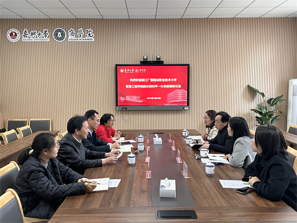 3月20日下午,浙江广厦建设职业技术大学管理工程学院院长田钊平、审计处副处长(主持工作)骆竹梅、会计系主任胡菁菁、管理工程学院办公室主任蒋剑莹一行4人来商学院调研交流。我校继续教育学院副院长李郁明、商学院副院长冯磊东、沙盘竞赛秘书处办公室主任张细香、商学院综合管理办公室主管杨尧等参加交流座谈。