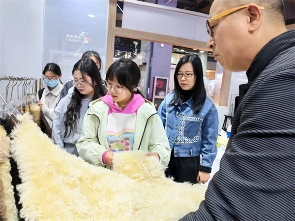 本次展会包括皮革毛皮区、时装面料区、原创设计区、智能机械区四大主题展馆,200余家全球展商参展,为学生提供了一次别开生面的实践教育。大家不仅亲身感受了来自河北、河南、山东等国内源头皮革毛皮企业以特装形式集中呈现的皮革、毛皮等各类潮流产品,而且欣赏了来自土耳其、西班牙等国际展商的拉贡、美利奴、托斯卡纳等高品质皮毛一体展品,全方位体验了生态、时尚、功能与可持续发展的理念。