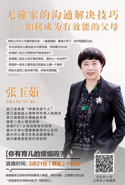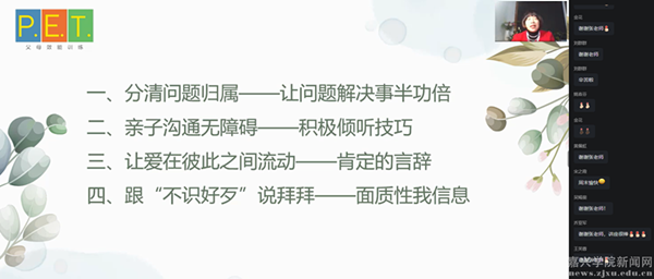 为关爱教职工身心健康,缓解工作与育儿双重压力,助力构建和谐家庭关系,3月21日,校工会、校妇联特邀国家二级心理咨询师、心理健康教育中心主任张玉茹教授,通过钉钉直播平台为教职工带来《无输家的沟通解决技巧——如何成为有效能的父母》专题心理讲座,活动吸引了200余名教职工相聚云端进行学习。