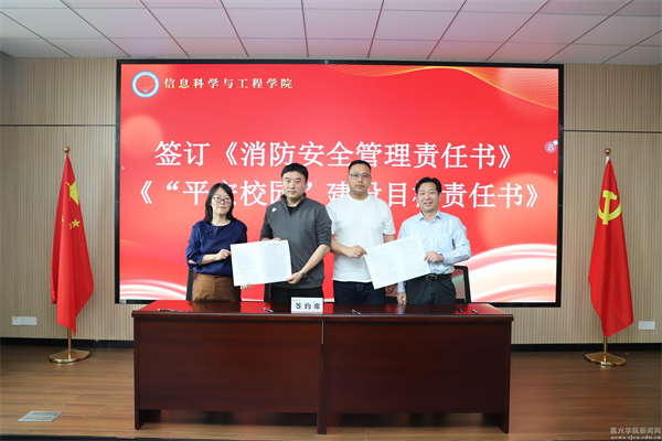 在签约仪式环节,朱奕远、学院副院长(主持工作)张先超代表学院与学院各部门主要负责人、党支部书记签订党风廉政建设责任书、意识形态工作责任书、“平安校园”建设目标和消防安全管理责任书。