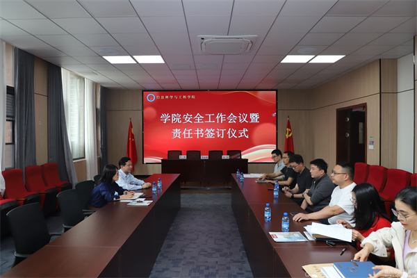为进一步筑牢安全防线,压实安全主体责任,4月16日下午,信息科学与工程学院在融信楼会议室召开2025年安全工作会议暨责任书签订仪式。学院党政领导班子、各内设机构主要负责人、党支部书记出席会议。会议由学院党总支书记朱奕远主持。