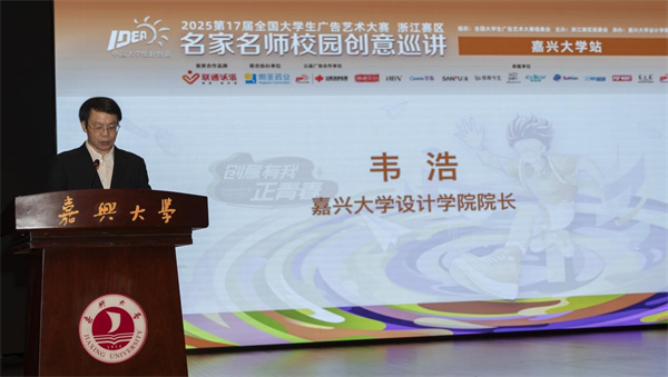 4月27日,第17届全国大学生广告艺术大赛浙江赛区名家名师校园创意巡讲活动在我校初心剧场举行。本次活动由全国大学生广告艺术大赛组委会组织,浙江赛区组委会主办,嘉兴大学设计学院承办,来自嘉兴大学、嘉兴南湖学院、浙江财经大学东方学院、嘉兴职业技术学院、嘉兴南洋职业技术学院等院校的600余名师生代表及业界嘉宾参与,呈现了一场集学术交流、创意启迪与行业前沿洞察于一体的盛会。