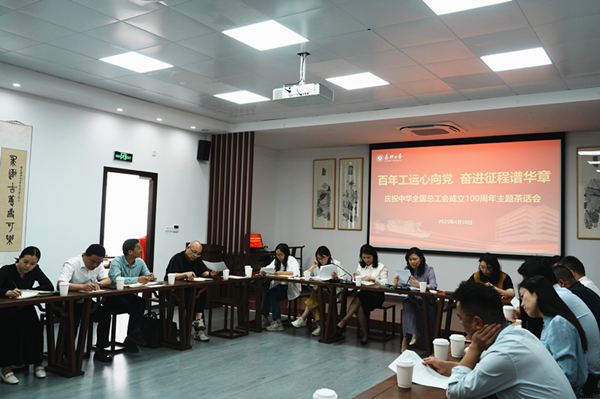 4月30日,我校在梁林校区党群服务中心二楼・中华传统文化体验中心举办“百年工运心向党,奋进征程谱华章”庆祝中华全国总工会成立100周年主题座谈会。校党委副书记陈立力、校工会专兼职干部、青年教师代表,以及浙江省教育工会青工、女工委员等齐聚一堂,共同回顾百年工运光辉历程,共话新时代工会使命与担当。本次座谈会由校工会常务副主席洪坚主持。