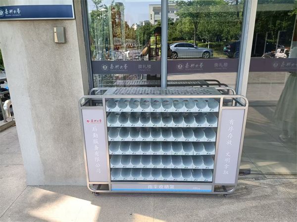 雨伞架的添置,有效解决了师生雨天的雨伞存放难题。师生们无需再为携带滴水雨伞而烦恼,只需将雨伞放置在雨伞架上,即可轻松进入楼宇。这一举措不仅为师生提供了便利,而且对维护教学楼等楼宇的安全舒适和干净整洁起到了积极作用,有助于为师生营造温馨、便捷、优雅的学习环境。