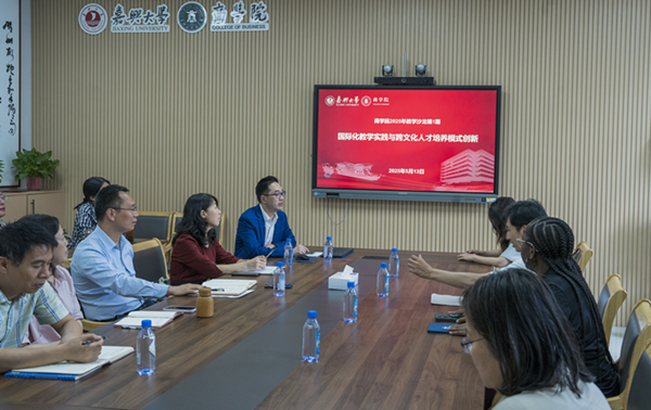 在互动交流环节,双方就课程国际化改革、中外合作教学模式、学生跨文化能力培养等问题进行了深入探讨。此次教学沙龙内容丰富、交流热烈,为商学院推进国际化教学改革、创新人才培养模式提供了多维参考。
