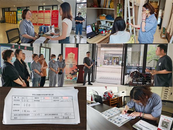 伴随着一阵急促的脚步声,寝室内自伤事故应急演练开始。美嘉苑3号楼学生公寓的一名学生神色慌张地冲进值班室,向值班阿姨大声呼救:“阿姨,我们同学在寝室受伤了!”接到求助后,值班员迅速赶赴现场查看学生伤情,同时第一时间拨打120急救电话和学校安全保卫部电话,并及时上报公寓楼长与学生所在学院的辅导员老师。在等待救援期间,值班员妥善保护事故现场,有序疏散围观学生,耐心安抚在场同学情绪。在完成现场处置后,值班员返回值班室,立即规范填写《学生公寓楼内突发事件登记表》,并及时上传至工作群留档备查。整套流程环环相扣、高效有序,寝室内自伤事故的应急演练顺利完成。