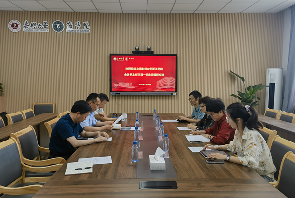 5月29日上午,上海财经大学浙江学院会计系主任王霞、会计系总支副书记许海亚、主任助理王文红、财会信息化竞赛负责人陈玉佼一行来我校商学院调研交流。我校继续教育学院副院长李郁明、商学院副院长冯磊东、会计教研室主任崔晓钟、综合管理办公室主管杨尧等参加交流座谈。