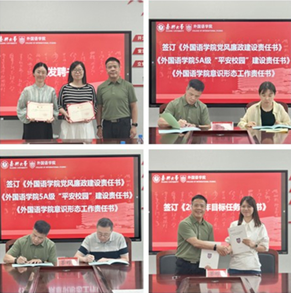 会上,学院院长唐艳芳对新上任的学科专业团队负责人表示祝贺并颁发了聘书,代表学院与各系部主要负责人签订了《2025年目标任务责任书》《党风廉政责任书》《5A级“平安校园”建设责任书》和《意识形态工作责任书》。责任书的签订,明确了学科专业团队负责人在教学科研、党风廉政建设、校园安全保障和意识形态工作等方面的具体责任与任务,为学院各项工作的有序推进提供了坚实保障。