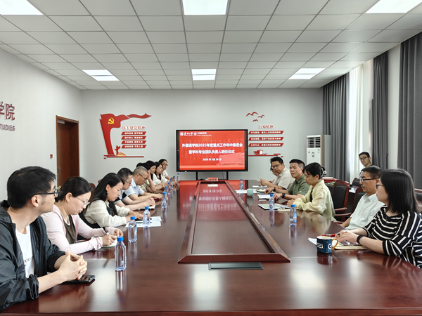 5月29日,外国语学院在兴德楼南楼516会议室举行2025年度重点工作年中推进会暨学科专业团队负责人聘任仪式。学院党政领导,翻译硕士学位点负责人,系部主任、副主任、教研室主任,外语培训中心主任,综合管理办公室主管、副主管,学工主管参加会议。会议由学院党委副书记张啸峰主持。