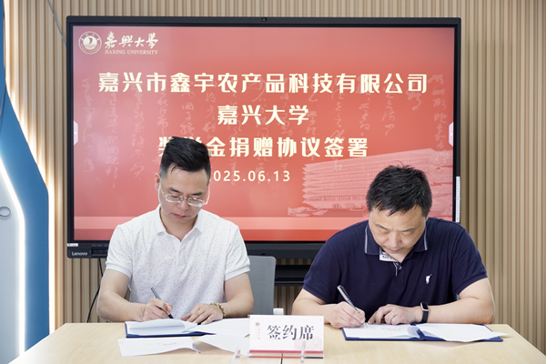 6月13日,“嘉兴大学-鑫宇奖学金”签约仪式在崇礼楼举行。嘉兴市鑫宇农产品科技有限公司总经理金祥、经理朱成杰,我校社会合作处、材料与纺织工程学院相关教师代表出席仪式。