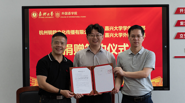 6月26日上午,外国语学院与杭州锐欧文化传播有限公司在兴德楼南楼516会议室举行校企合作签约仪式暨欧罗教育发展基金捐赠签约仪式。校党委统战部常务副部长、学生工作部部长葛建伟,杭州锐欧文化传播有限公司董事长朱烜、学院党政班子等相关人员出席签约仪式。仪式由学院党委副书记张啸峰主持。