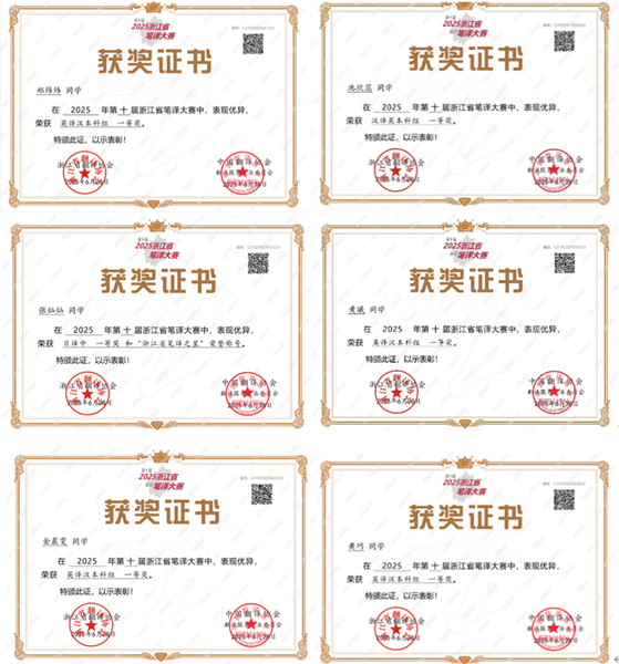 近日,由浙江省翻译协会主办的第十届浙江省笔译大赛获奖情况公布,我校学子表现卓越,不仅在传统英语赛道上再创佳绩,而且在日语、法语等多语种赛道中也披荆斩棘、取得好成绩,实现全面丰收。