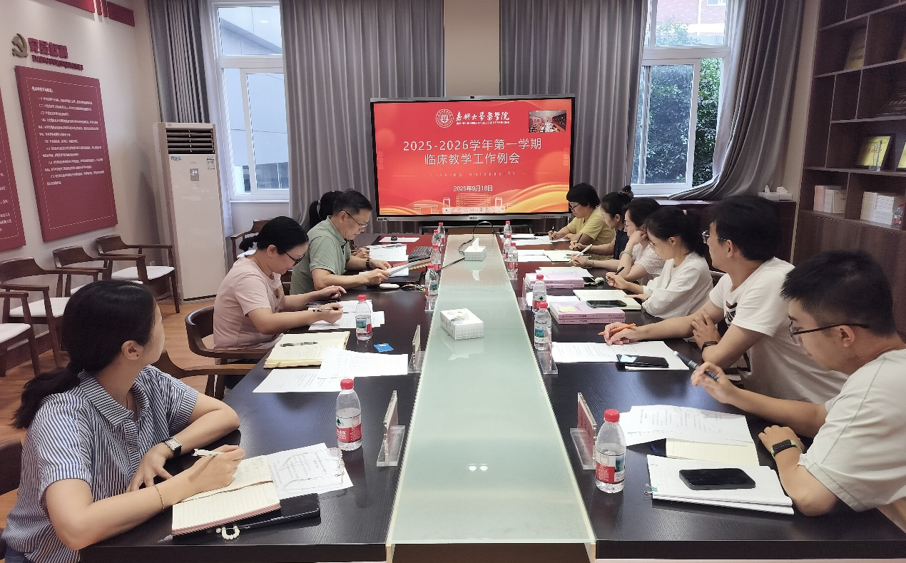 9月18日下午,医学院2025-2026学年第一学期第1次临床教学工作例会在梁林校区仁心楼231会议室召开。医学院副院长王敏主持会议。