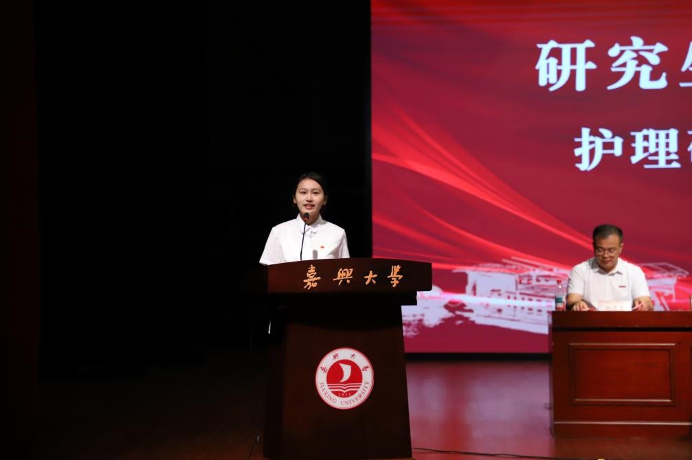 硕士研究生新生代表顾欣雨回顾了在嘉大的成长历程,衷心感谢母校四年来的培养,并围绕做专业的“深耕者”、温暖的“守护者”和彼此的“同行者”三个方面畅谈感悟。她呼吁大家共同成为嘉大医学院学术沃土的“见证者”与“开创者”,开启一段无愧于己、无愧于时代的学术新程。
