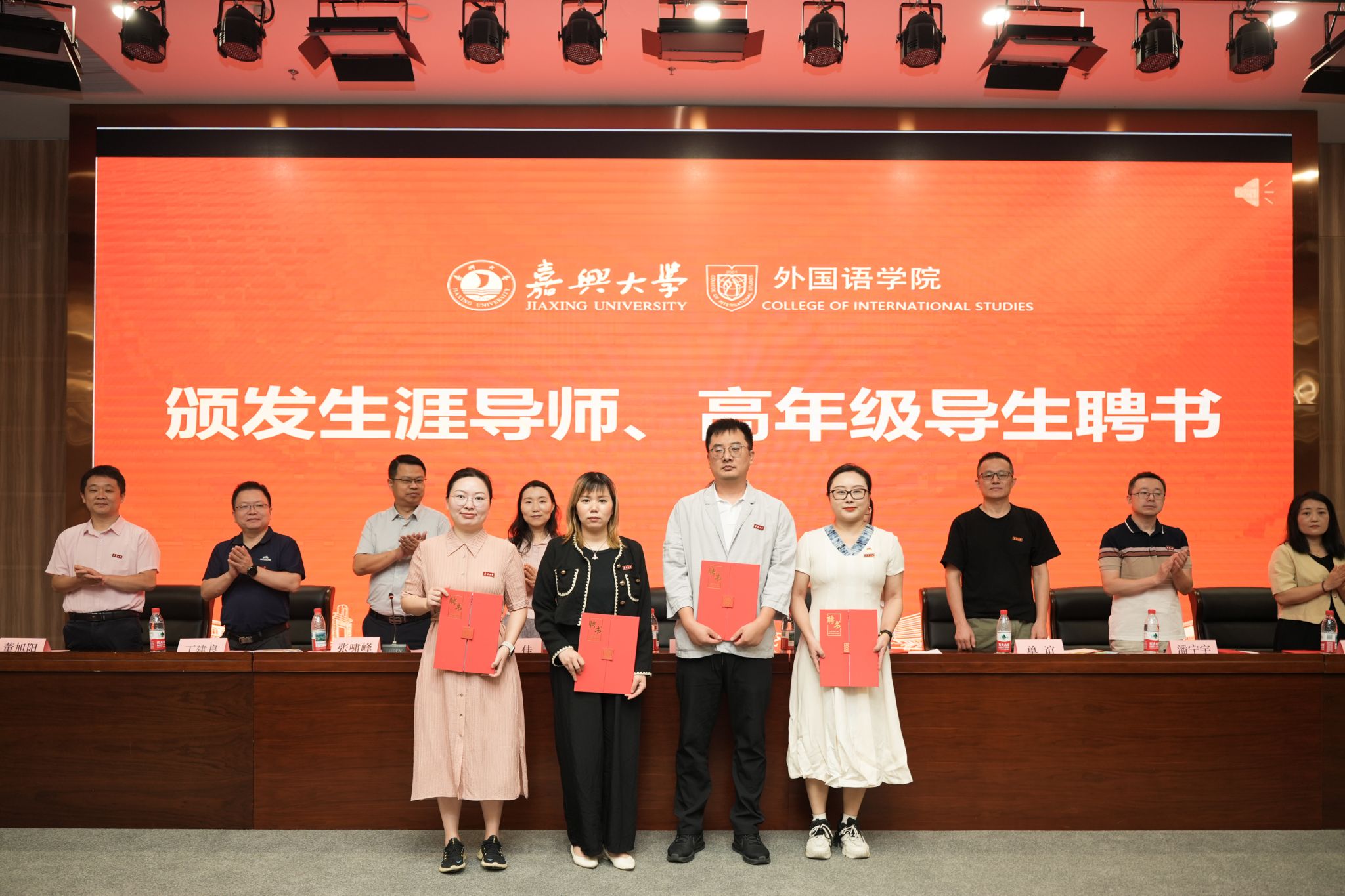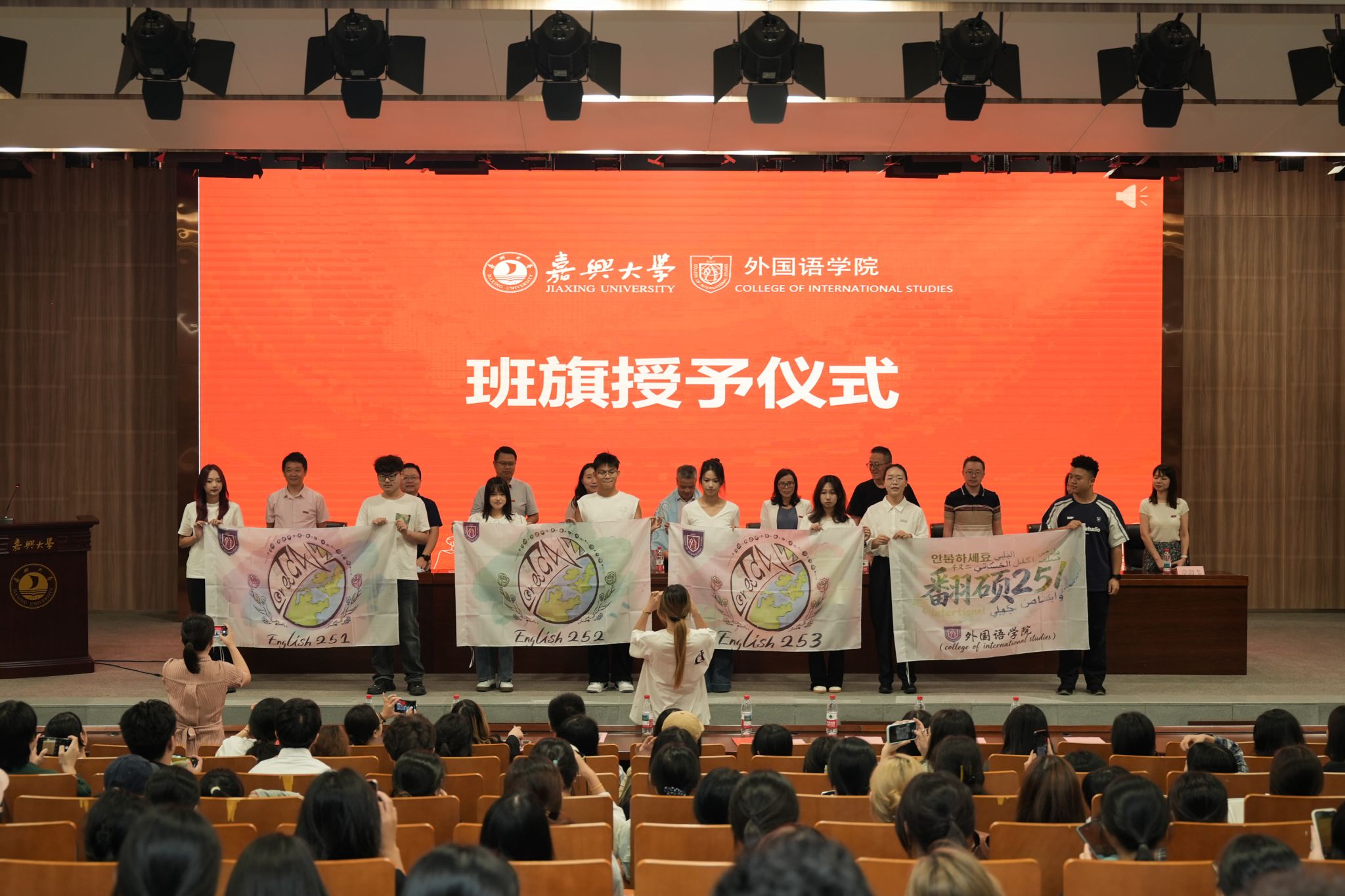 典礼现场,学院还为新生班主任、助理辅导员、生涯导师代表、高年级导生代表颁发聘书,为8个新生班级举行了班旗授予仪式。各班新生代表持创意班旗亮相,凝聚力量,承载四年憧憬。