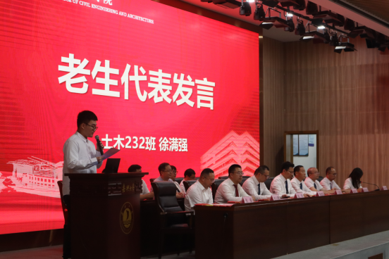 在发言环节,本科新生代表谢欣茹分享了她对建筑工程领域的强烈好奇和探索专业知识的坚定决心。研究生新生代表陈晋薇则详细畅谈了自己的科研规划,流露出对深耕专业的满腔热忱。老生代表徐满强结合自身的校园经历,从学习、社团活动到社会实践等方面,为新生们传授了宝贵的经验。教师代表王梓骁深入介绍了学科的发展前景,鼓励新生们夯实基础、多思考、多练习。校友代表张盛通过分享自己的职场故事,解读了行业对人才的需求,为新生们搭建起了校园与社会沟通的桥梁。