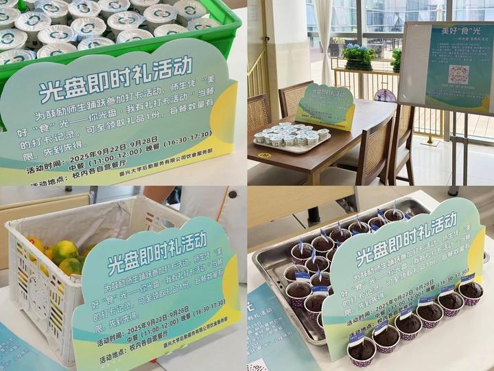9月22日至28日,我校后勤服务有限公司组织开展了“制止餐饮浪费——你光盘・我有礼”校园系列活动。活动吸引了广大师生的踊跃参与,在校园内营造了良好的节约氛围。