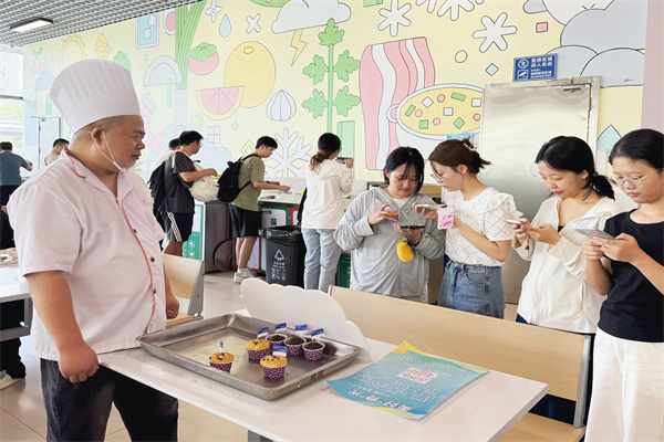 活动过程中,广大师生在各自营餐厅用餐结束后,只要进行“光盘”打卡,就能获得光盘即时礼。无论是中餐还是晚餐时段,各自营餐厅都安排了工作人员热情引导师生参与活动,为每一位打卡成功的师生送上烘焙产品、酸奶、水果等贴心福利。