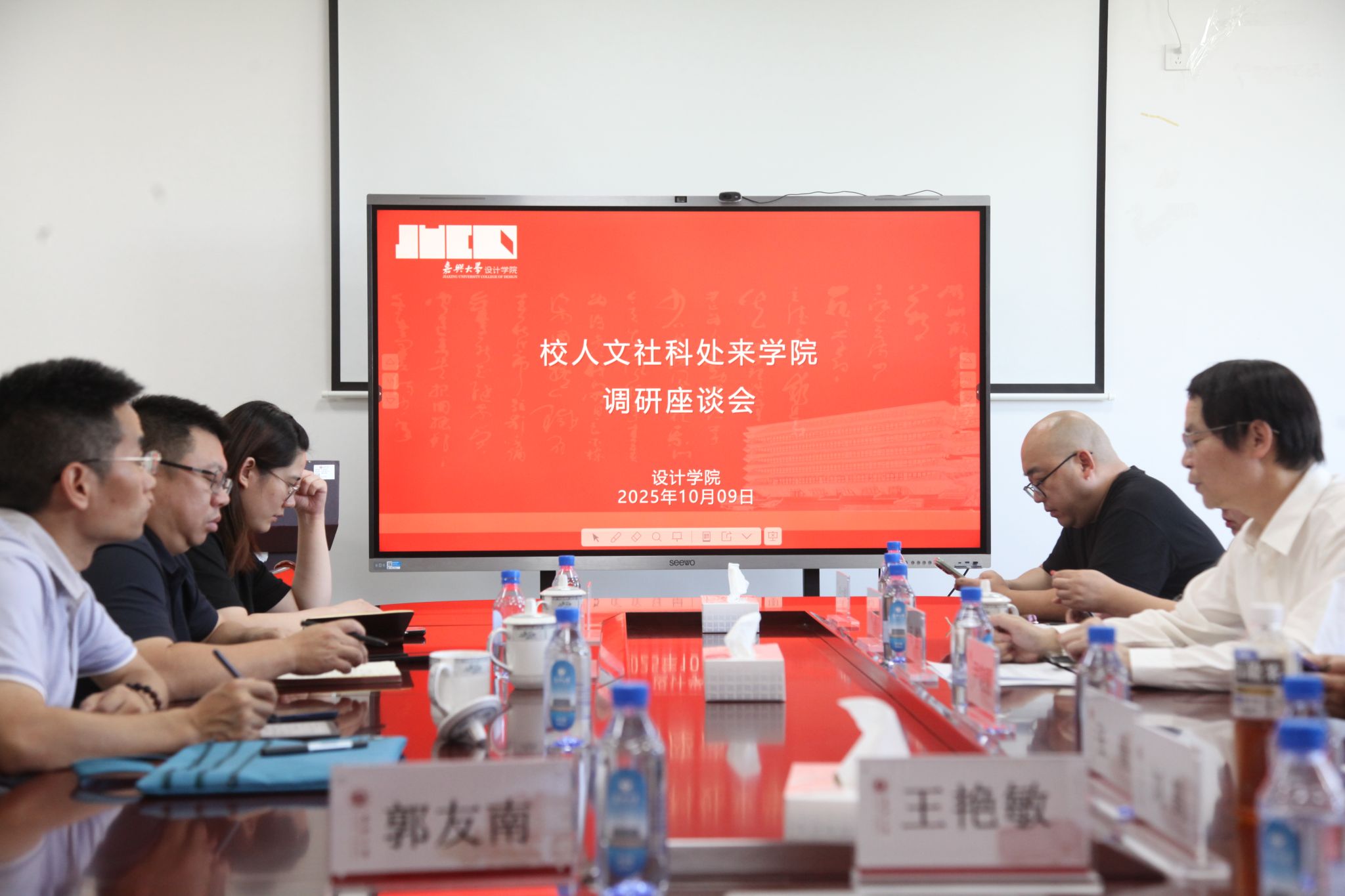 10月9日下午,人文社科处处长彭冰冰一行赴设计学院开展调研并举行座谈会。设计学院院长韦浩以及学院各个系骨干教师参加了本次调研座谈会。