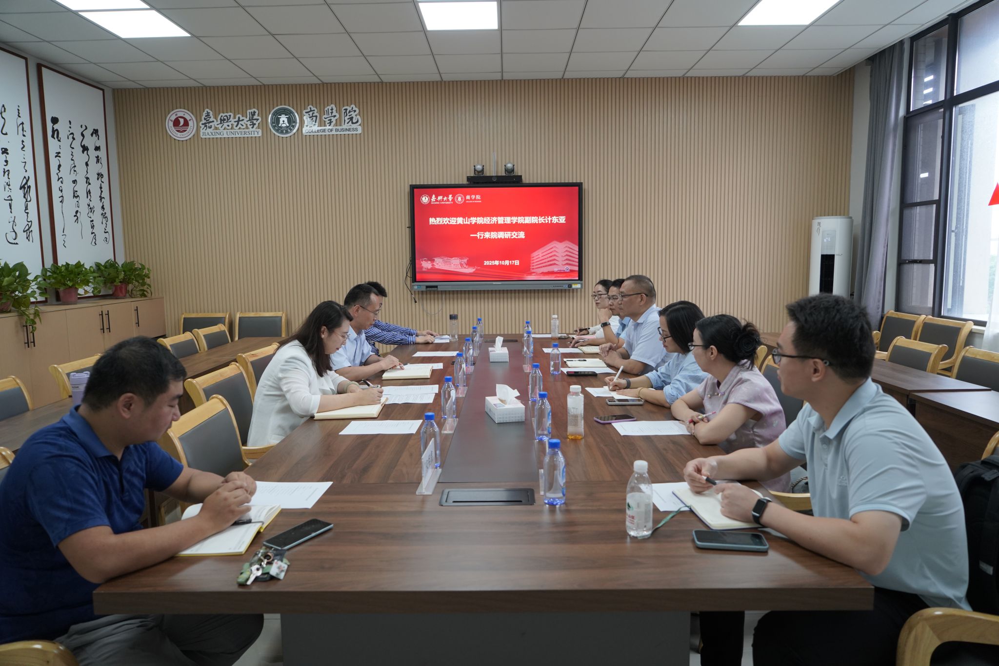 10月17日上午,黄山学院经济管理学院副院长计东亚一行6人来我院调研交流。商学院副院长冯磊东、学术副院长智佳宁及相关专业负责人、教研室主任参加交流座谈。会议由冯磊东主持。