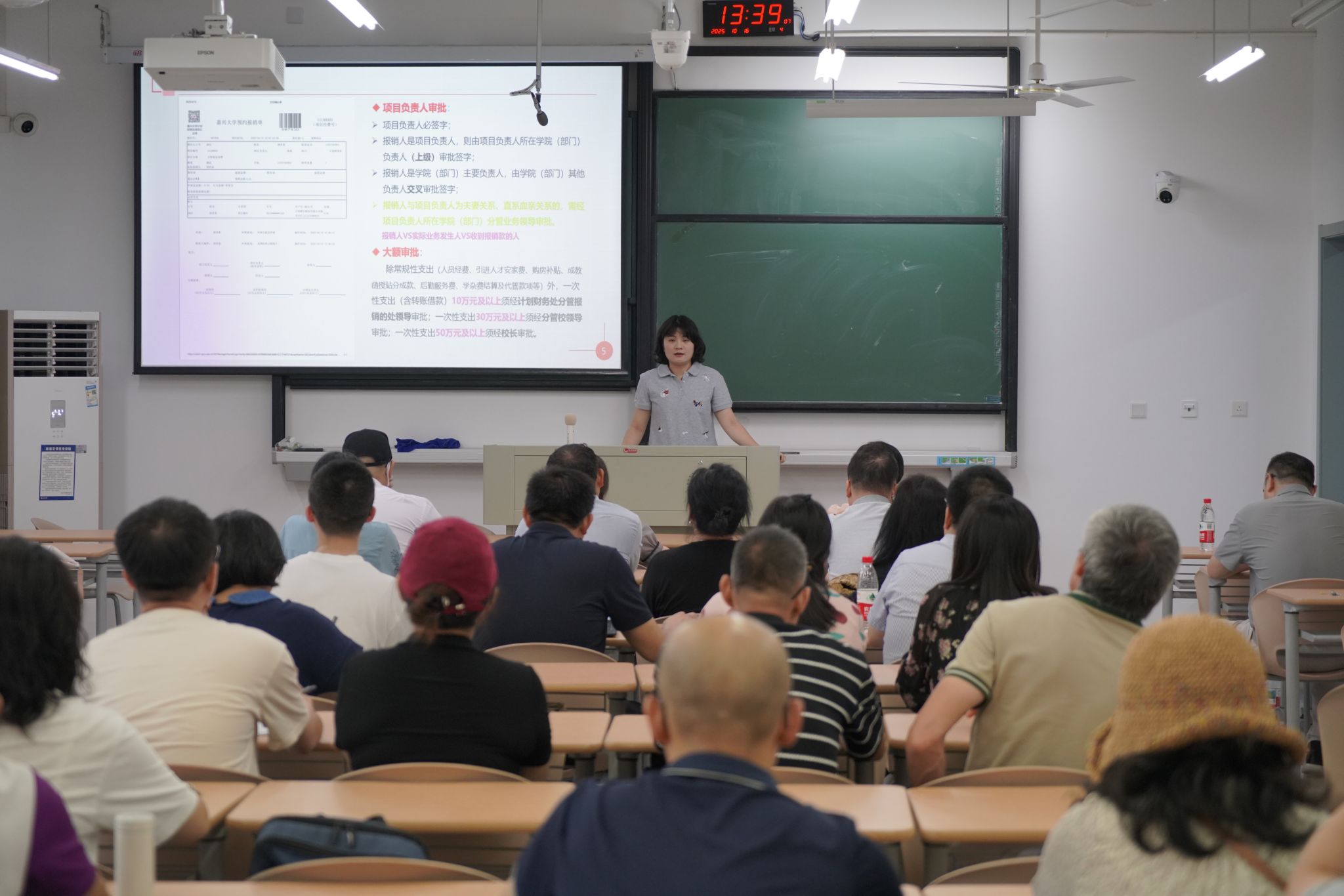 讲座中,钟若菲围绕财务审批制度、劳务费管理、公务接待管理、差旅费报销、科研经费使用等教职工关注的财务事项,进行了政策解读。她结合案例分析了了日常报销中的常见问题,强调了票据规范、审批流程和合规使用等注意事项。