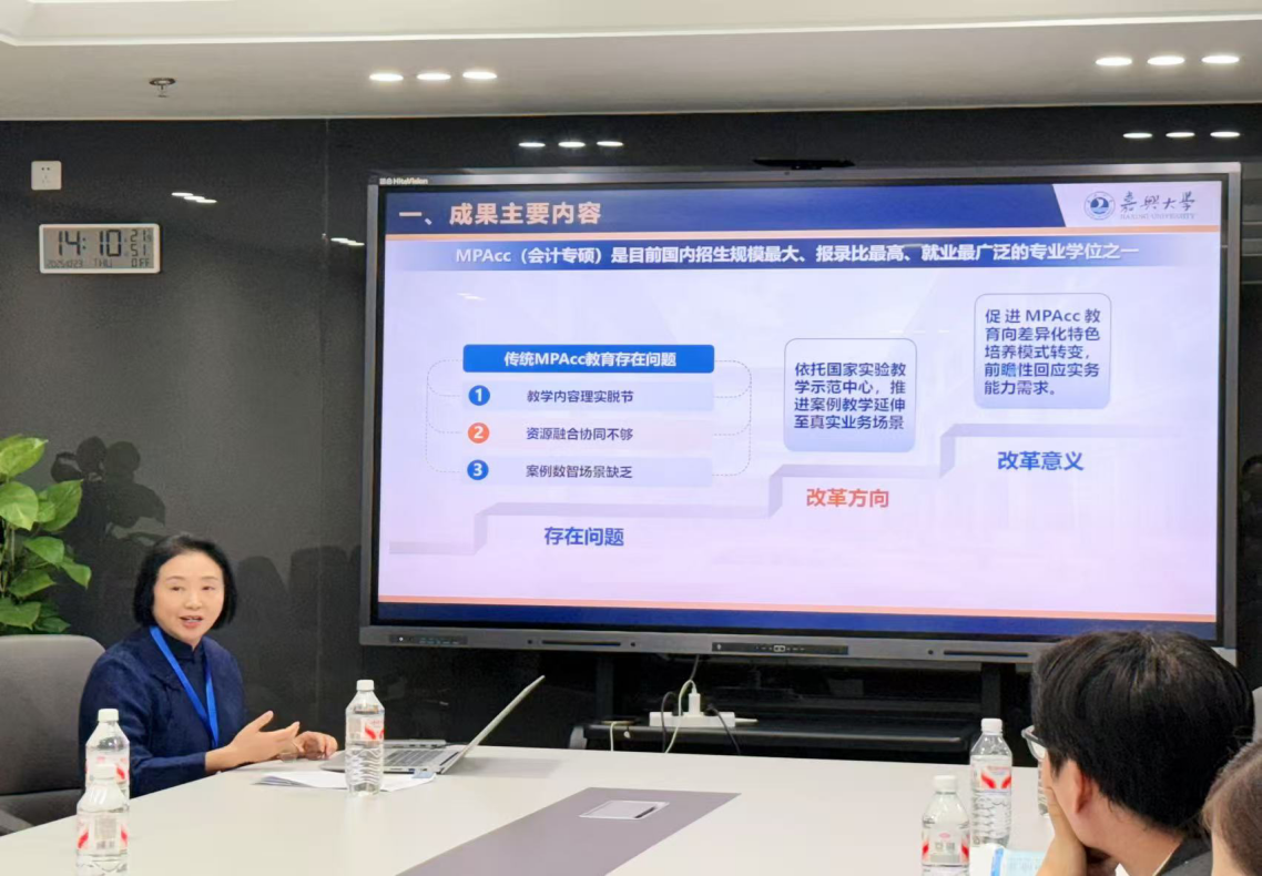 潘煜双教授在“人工智能框架构建及其对研究生教育的深层影响”平行论坛作专题报告《集成·融合·迭代:数智化场景下MPAcc案例教学三联驱动机制的创新与实践》,围绕嘉兴大学MPAcc的案例教学实践进行了经验分享。潘煜双教授认为,案例教学作为衔接教育场域与职业实践的中介,也是实现学科交叉融合重要路径,越来越成为专硕教育的重要手段。嘉兴大学的MPAcc教育针对“数智场景案例集成与编写驱动机制不健全、案例教学实施与相关教学资源协同性不够、评价激励标准与案例教学目标契合度不高”的三大问题,构建了系统化的MPAcc案例教学三联驱动机制:实务导向案例集成编写机制、教研赛训一体的融合驱动机制和目标达成案例教学评价迭代机制。经过6年的探索与实践,案例教学取得了良好的培养效果与社会影响,为其他相关专业学位研究生教育提供借鉴。