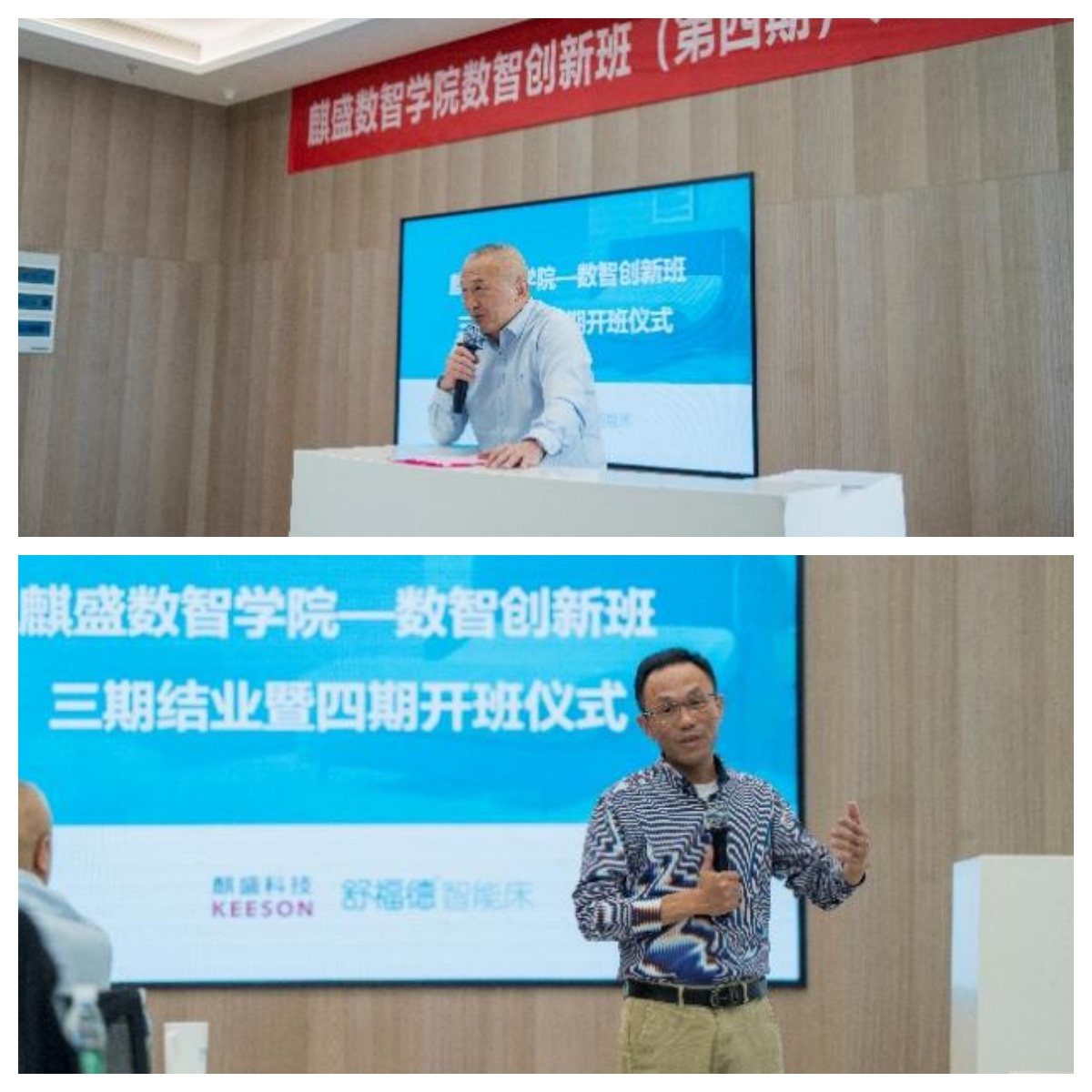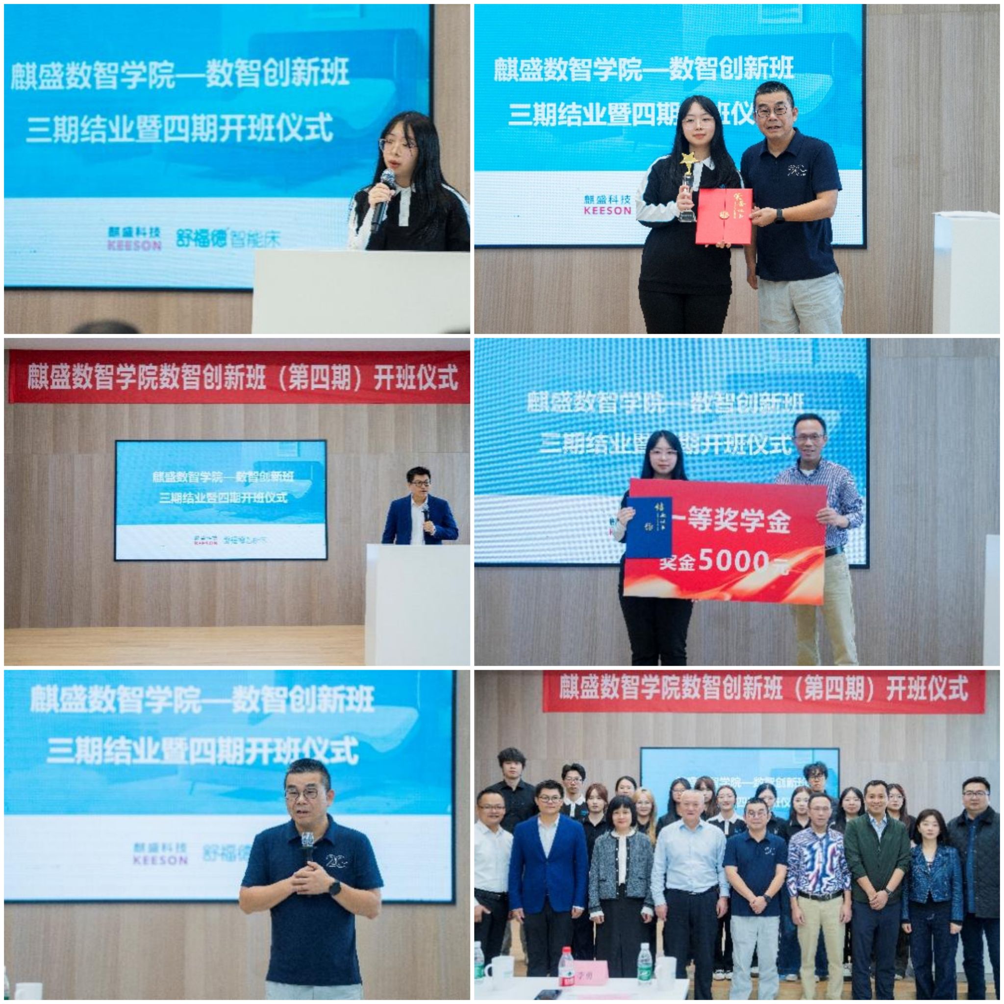 10月23日下午,“麒盛数智学院—数智创新班”第三期结业暨第四期开班仪式在麒盛科技股份有限公司总部举行,此次活动不仅是对第三期学员学业成果的检阅与表彰,也标志着新一批优秀学子的正式启航,是校企双方在协同育人道路上迈出的又一坚实步伐。麒盛科技股份有限公司总经理黄小卫、我校商学院院长李勇、麒盛科技股份有限公司商学院院长龙潭、我校商学院营销教研室主任方芳等企业领导和学校教师代表出席开班仪式。