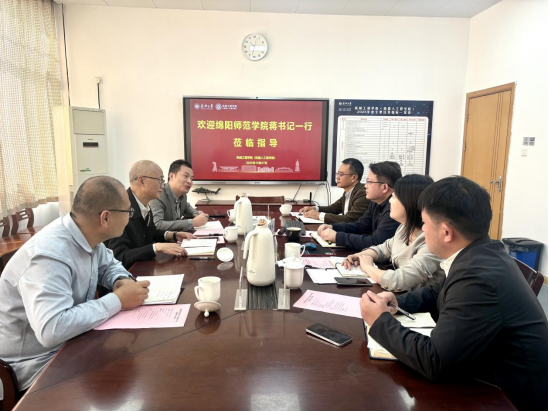 朱耀东院长对蒋书记一行的到访表示热烈欢迎,并围绕学院的发展历程、办学特色、师资队伍、学科布局、科研成果以及人才培养成效等方面进行介绍。绵阳师范学院智能制造学院蒋泳对我院的热情接待表示感谢,并高度评价了我院在学科建设和人才培养方面所取得的显著成就,他简要介绍了绵阳师范学院智能制造学院的基本情况、发展定位以及在智能制造领域人才培养方面的探索与实践。随后,双方就党建引领、学科专业建设、人才培养等方面开展了深入而务实的交流。