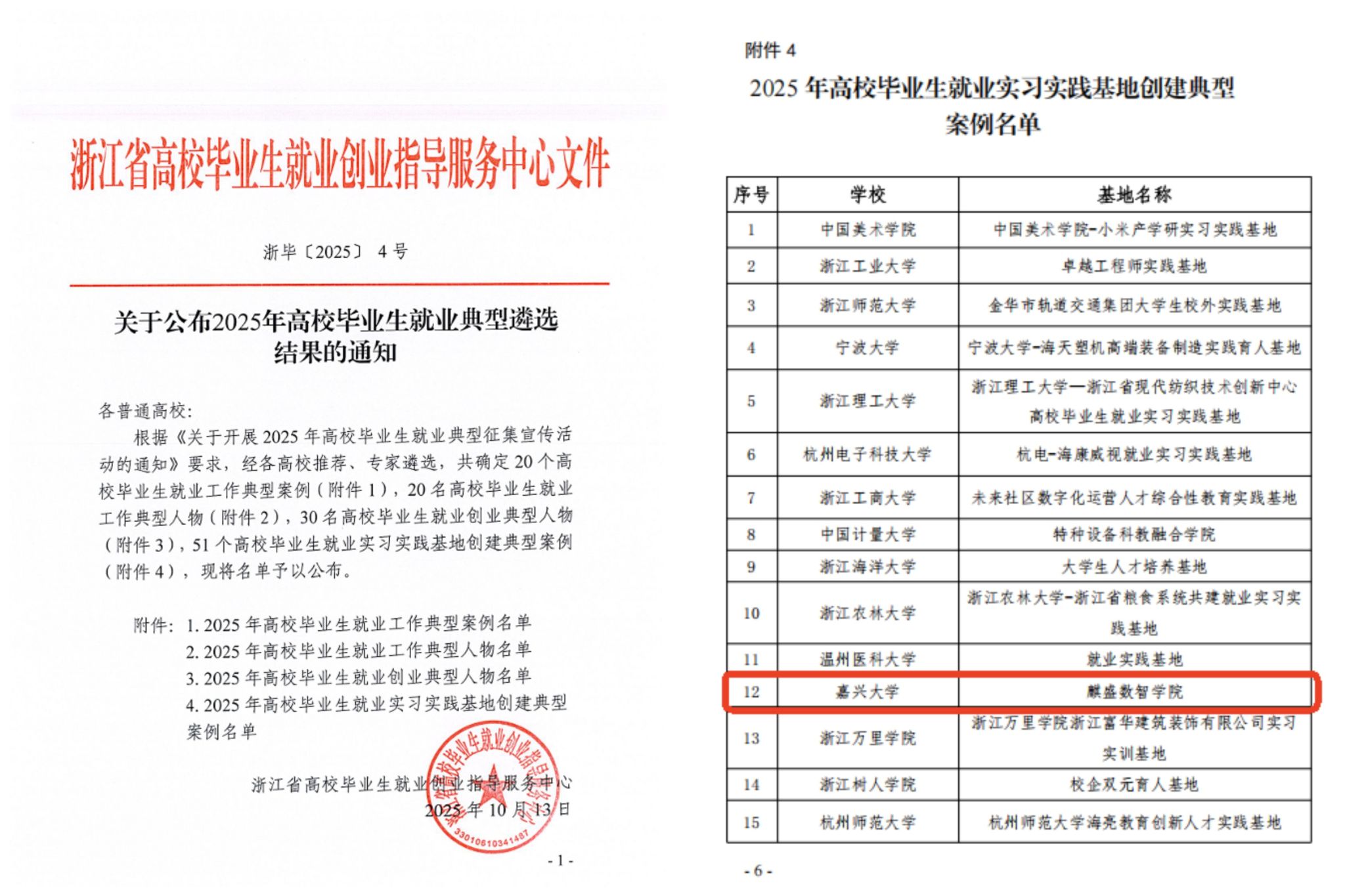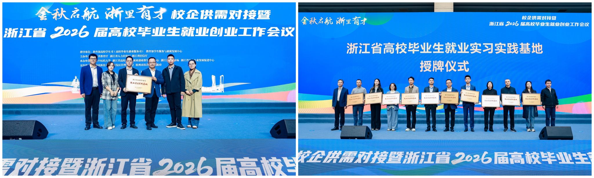 10月28日,浙江省2026届高校毕业生就业创业工作会议在杭州高新区(滨江)举行。我院校企协作基地“麒盛数智学院”获评“浙江省高校毕业生就业实习实践基地”。麒盛科技人力资源总监李伟峰、学生处处长葛建伟、副处长叶砚,学院党委书记虞岚,麒盛数智班班主任罗文波及就业辅导员等参加活动。
