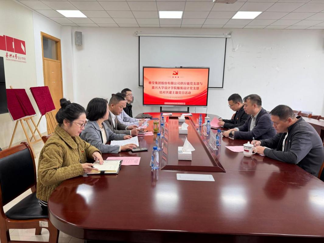 设计学院党委书记蒋建其,党委委员、副院长裘玉英,服装设计系党支部书记李端,雅莹集团供应链党支部书记钟英亮及双方支部委员共同出席。活动由裘玉英主持。